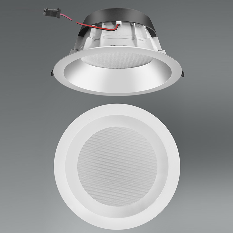 LED Einbaudownlights in runder Ausführung mit festem Lichtkopf als Ersatz für klassische Downlights mit Kompaktleuchtstofflampenbestückung.